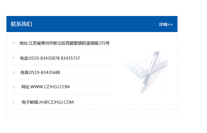 地址:常州市新北區友邦商務大廈1幢16、17層  電話:0519-85101652  傳真:0519-85112595  郵編:213022  網址:www.cz-jiayue_cn.bhxzs.com  郵箱:xiajifengaa@163.com